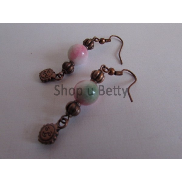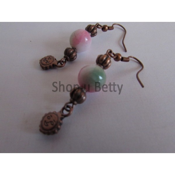 Naušnice staroměď, d.5,2 cm včetně háčku, korálky žíhané.